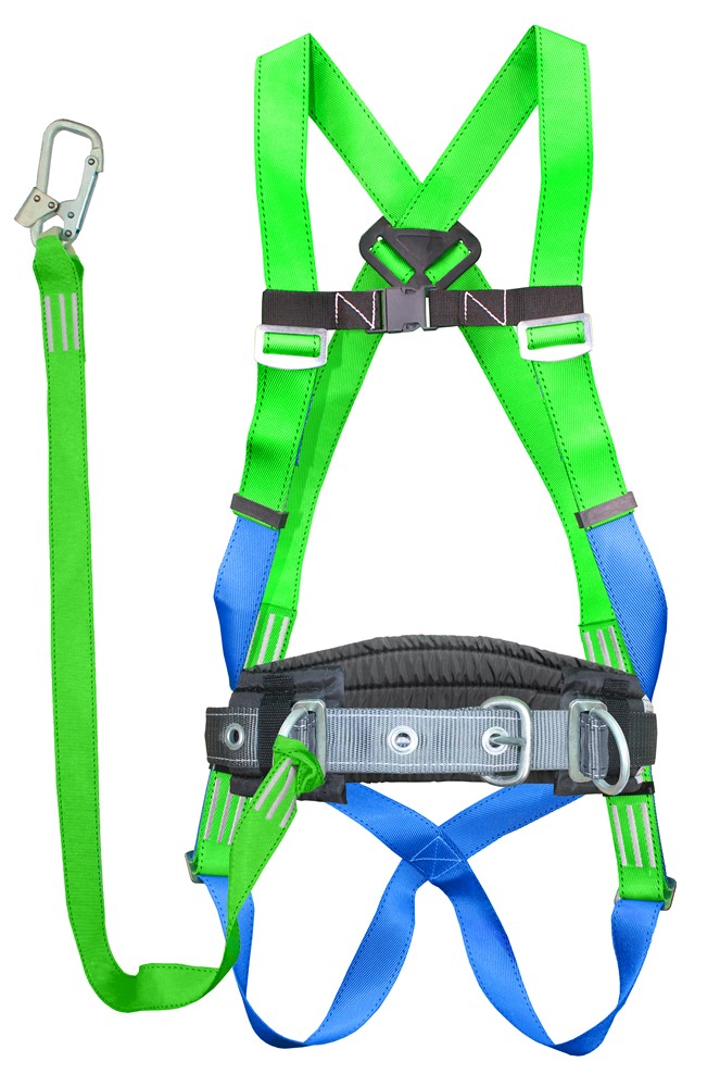 Пояс состоит из ремня с пряжкой, кушака, наплечных и набедренных лямок, двух D-колец на поясе и одного на спине (для страховки или спасательных работ и экстренной эвакуации) и стропа из ленты с монтажным карабином. Пояс упакован в водонепроницаемый пакет и содержит паспорт и инструкцию по применению.