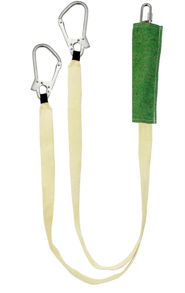 Строп аАдог К50+Кс - страховочный строп, двойной (двуплечий) из арамидной ленты с амортизатором в чехле из огнеупорного материала, двумя большими монтажными и одним соединительным карабином