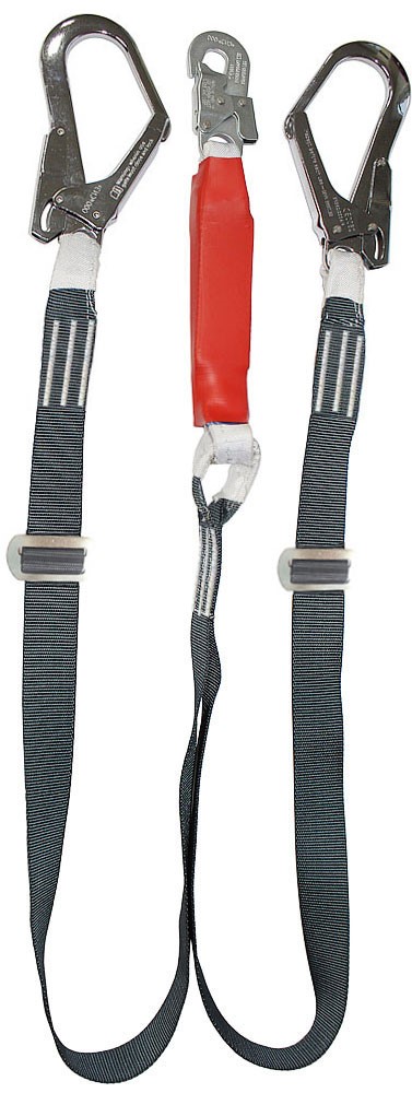Строп аАдрег К50+К20 NL - страховочный регулируемый строп, двойной (двуплечий) из полиэфирной ленты с амортизатором, двумя большими и одним малым монтажным карабином