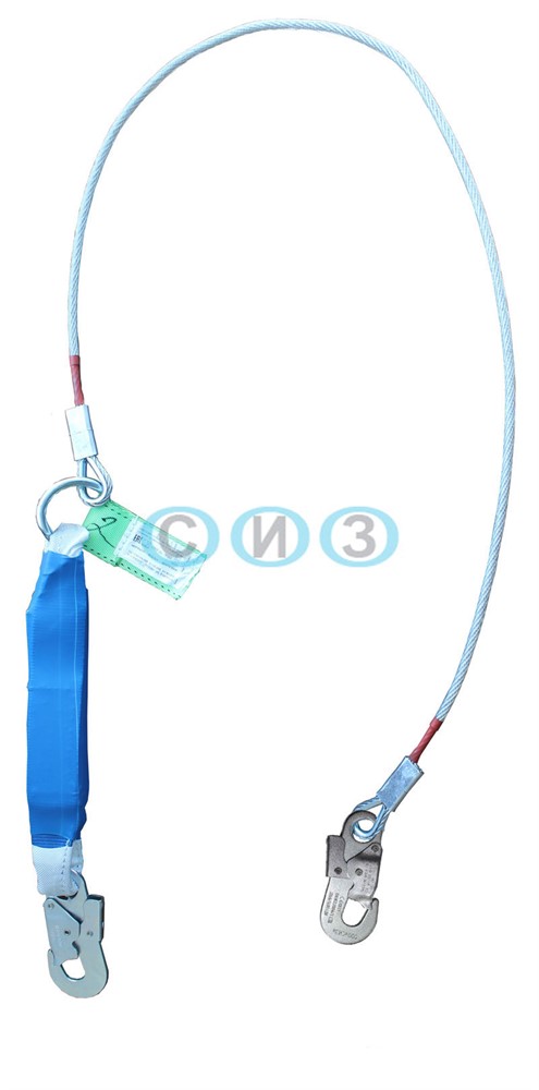 Строп аБ К20+К20 NL - страховочный строп из металлического троса в ПВХ оболочке с амортизатором, с двумя малыми монтажными карабинами