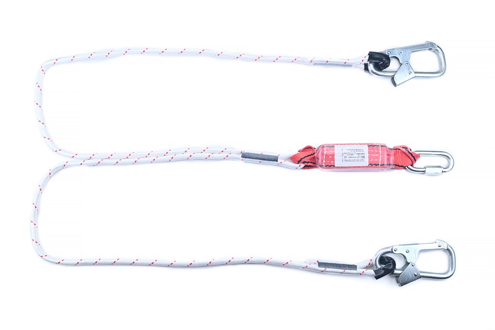 Строп аВд+Кс (канат в оплетке) - страховочный строп, двойной (двуплечий) из капроновой верёвки с амортизатором, двумя монтажными и одним соединительным карабином.