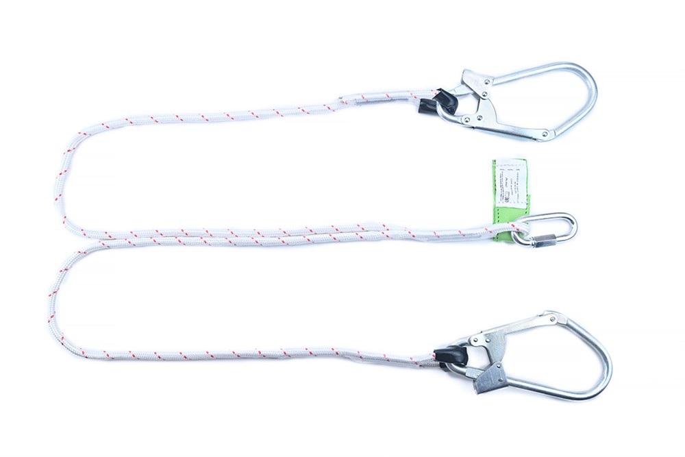 Строп Вд К50+Кс (канат в оплетке) - страховочный строп, двойной (двуплечий) из капроновой верёвки, двумя большими монтажными и одним соединительным карабином.