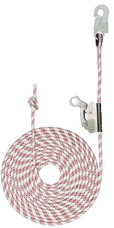 Зажим на гибкой анкерной линии ползункового типа (не разёмное страховочное устройство ползункового типа, оснащенное автоматическим замыкающим механизмом. Материал – сталь с гальванопокрытием. Используется с канатом с сердечником низкого растяжения диаметром 12 мм., конец стропа зашит в пластиковковый коуш с одной стороны и с другой сторон концевой ограничитель(узел). Комплектуется карабином К20 NL раскрытие зёва карабина 18мм. и блокирующим устройством ползункого типа.