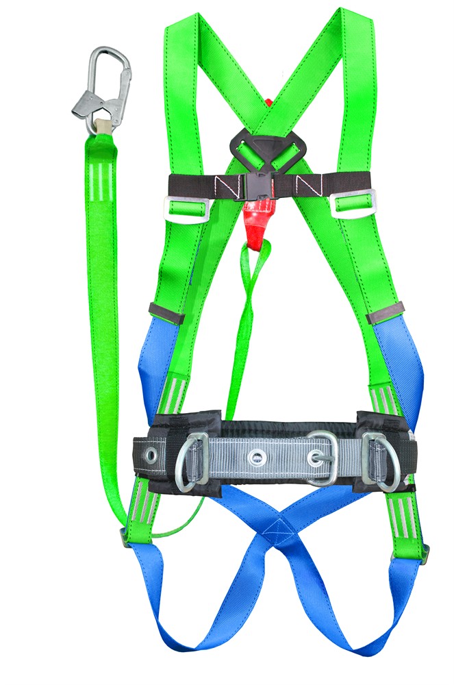 Состоит из ремня с пряжкой, наплечных и набедренных лямок, кушака, двух D-колец на поясе (для удержания и позиционирования) и одного на спине, и стропа из ленты с амортизатором и монтажным карабином. Пояс упакован в водонепроницаемый пакет и содержит паспорт и инструкцию по применению.