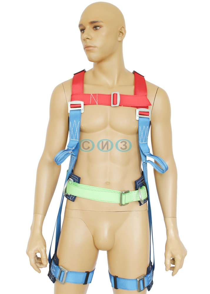 ССП-4 страховочная привязь с широким поясом для фиксации спины. Пояс имеет боковые D-образные кольца для рабочего позиционирования и удержания. Одно D-образное кольцо на спине(снабжено удлинителем стропа, выводящим устоойство в зону досягаемости работника) и две крепёжные петли спереди для страховки. Разъёмные регулировочные пряжки на наплечных и набедренных лямках позволяют быстро подогнать привязь по размеру.