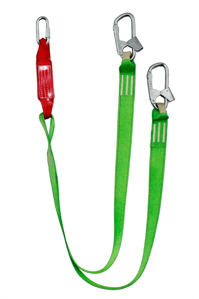 Строп аАд+Кс - страховочный строп, двойной (двуплечий) из полиэфирной ленты с амортизатором, двумя монтажными и одним соединительным карабином