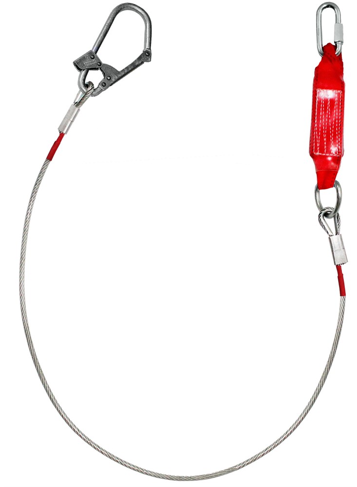 Строп аБ К50+Кс - страховочный строп из металлического троса в ПВХ оболочке с амортизатором, большим монтажным и соединительным карабином.