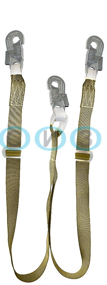 Строп Адрег К20+К20 NL - удерживающий строп, двойной (двуплечий) из арамидной ленты,  с тремя малыми монтажными карабинами.