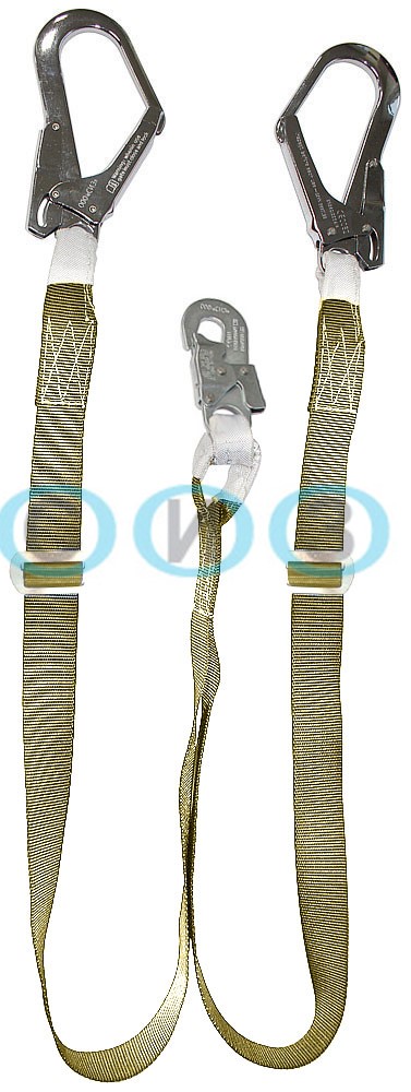 Строп Адрег К20+К20 NL - удерживающий регулируемый строп, двойной (двуплечий) из арамидной ленты, с двумя большими монтажными карабинами и одним малым монтажным карабином.