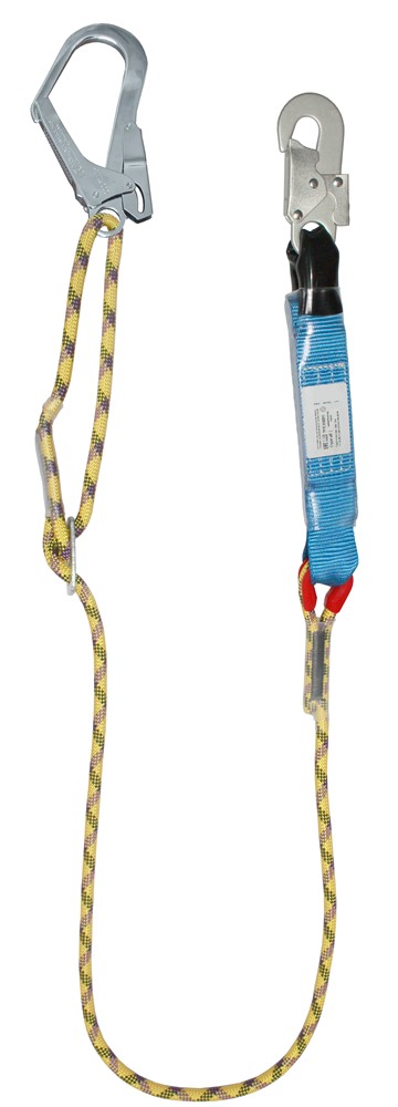 Строп аВрег К50+К20 NL (канат в оплетке) - страховочный регулируемый строп из капроновой верёвки с амортизатором, одним большим монтажным карабином и одним малым монтажным карабином.