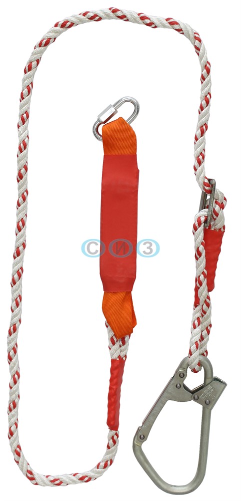 Строп аВрег К50+Кс (канат) - страховочный строп из регулируемого полиамидного каната с амортизатором, большим монтажным и соединительным карабином