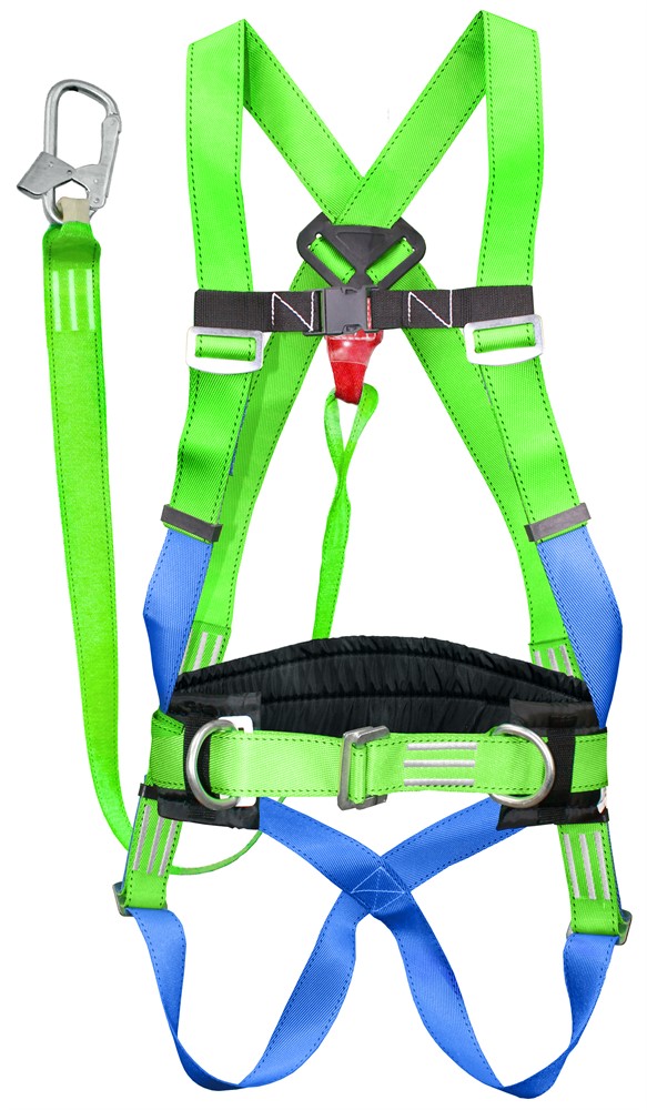 Состоит из привязи ремня с пряжкой, наплечных и набедренных лямок, уширенного кушака, двух D-колец на поясе (для удержания и позиционирования) и одного на спине и страховочного стропа из полиэфирной ленты с амортизатором. Привязь упакована в водонепроницаемый пакет и содержит паспорт и инструкцию по применению.