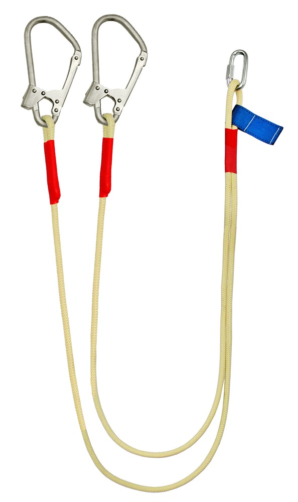 Строп Вердог К50+Кс - страховочный строп, двойной (двуплечий) из арамидной веревки из огнеупорного материала, двумя большими монтажными и одним соединительным карабином. Материал – огнеупорный, арамид с полиэфиром.
